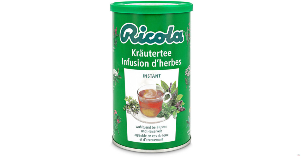 A Ricola Kräutertee egy svájci instant gyógytea,13 alpesi gyógynövény egyedülálló keveréke alapján készült, mint például:lándzsás útifű, orbáncfű, borsmenta, kakukkfű,zsálya, cickafark, katicabogár, mályva,bodzavirág, kankalin, zsályavirág.A speciális gyártási folyamat garantálja az aktív összetevők és ízek magas százalékát,Ennek eredménye az a nagyon jótékony hatás, amit a gyógynövények mindig a szervezetünkben hagynak. A Ricola gyógynövények megakadályozzák a megfázást, menthol tartalmának köszönhetően pedig enyhítik az irritációt és a köhögést.